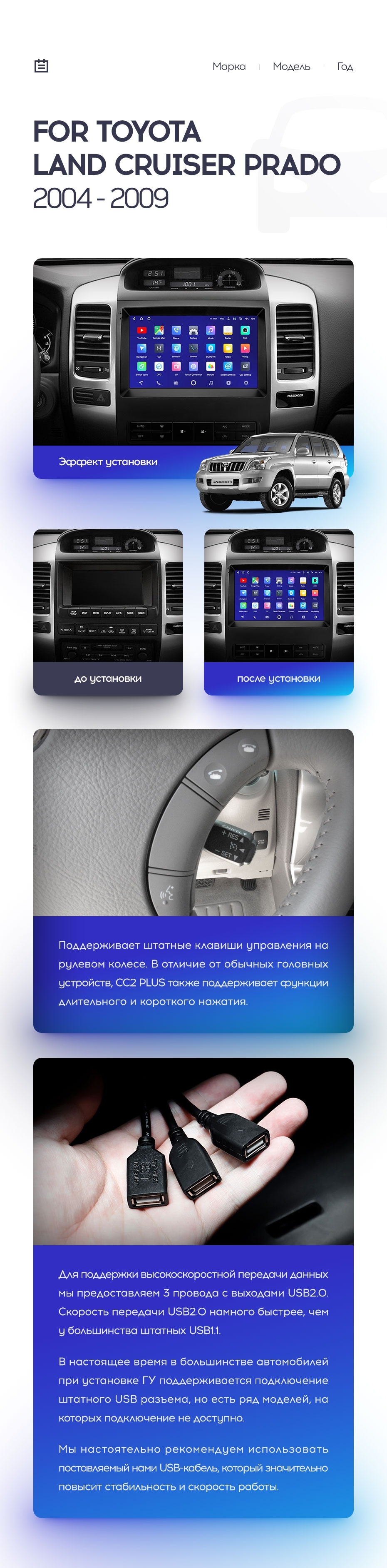 Модель Teyes CC2 Plus - это именно та штатная магнитола, которая полноценно заменит в вашем автомобиле все мультимедийные устройства. Большой и красочный дисплей, управление голосом, интернет и навигация, безупречная акустика и всё то, что так любят автомобилисты - комфорт и мощность во время езды.