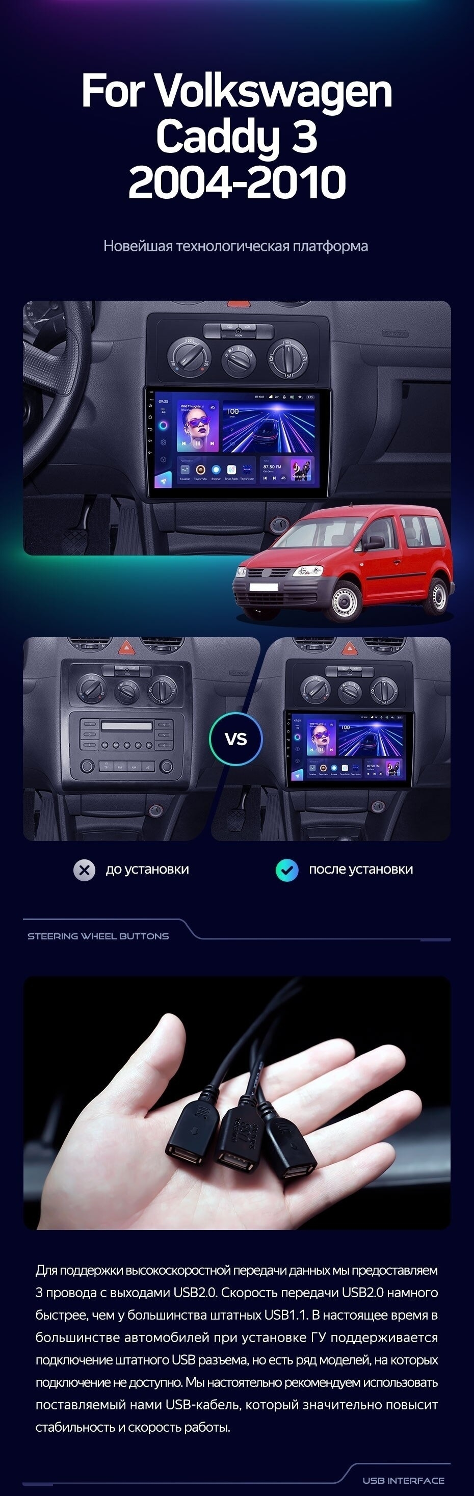 Штатная магнитола Teyes CC3 2K 4/32 Volkswagen Caddy 2K (2004-2010) - купить всего за 40 300 руб. в интернет-магазине во Владивостоке Teyes.com.ru. ✓ Самый лучший выбор мультимедиа ✓ Лучшая замена штатному ГУ ✓ Тел. +7 (800) 775-31-74