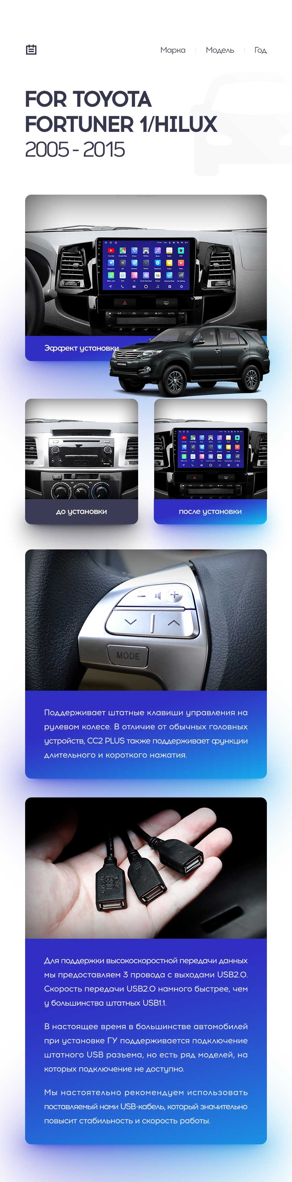 | Дополнительные аксессуары | USB-видеорегистратор, TPMS, передние парктроники, диагностический адаптер OBD | USB-видеорегистратор, TPMS, передние парктроники, диагностический адаптер OBD | USB-видеорегистратор, TPMS |