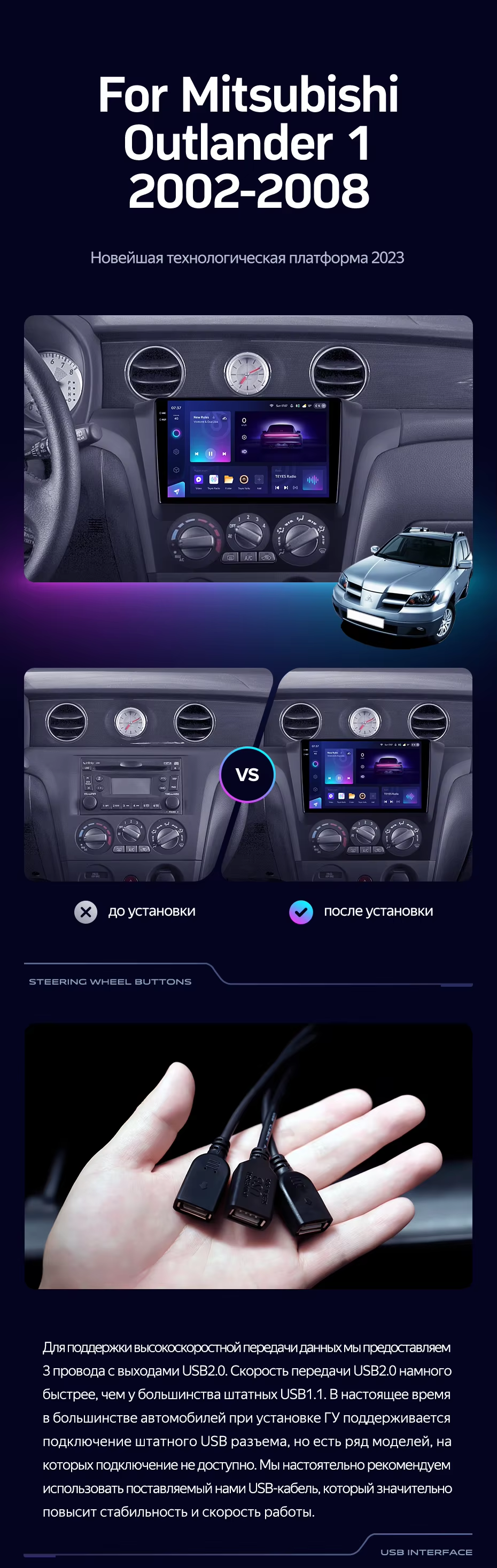 Штатная магнитола Teyes CC3 2K 6/128 Mitsubishi Outlander 1 (2002-2008) F1 - купить всего за 45 370 руб. в интернет-магазине во Владивостоке Teyes.com.ru. ✓ Самый лучший выбор мультимедиа ✓ Лучшая замена штатному ГУ ✓ Тел. +7 (800) 775-31-74