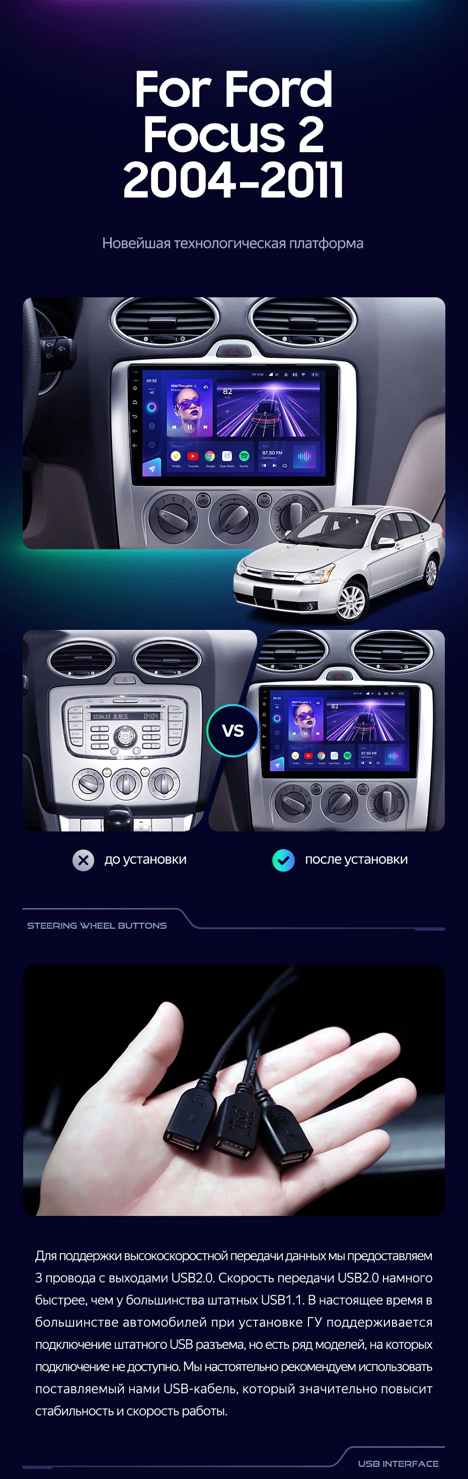 Штатная магнитола Teyes CC3 4/32 Ford Focus 2 Mk 2 (2004-2011) F2 - купить всего за 32 120 руб. в интернет-магазине во Владивостоке Teyes.com.ru. ✓ Самый лучший выбор мультимедиа ✓ Лучшая замена штатному ГУ ✓ Тел. +7 (800) 775-31-74