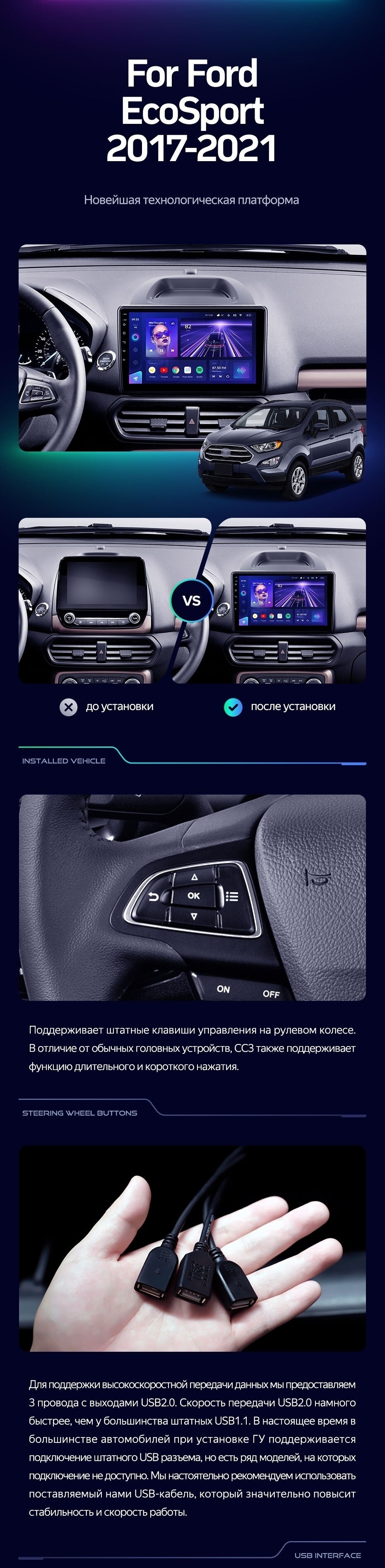 Штатная магнитола Teyes CC3L 4/32 Ford EcoSport (2017-2021) - купить всего за 29 200 руб. в интернет-магазине во Владивостоке Teyes.com.ru. ✓ Самый лучший выбор мультимедиа ✓ Лучшая замена штатному ГУ ✓ Тел. +7 (800) 775-31-74