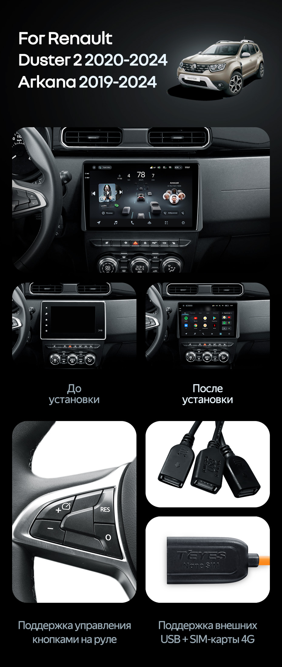 Штатная магнитола Teyes CC4 6/64 Renault Duster HM 2 (2020-2023) F1 - купить всего за 49 770 руб. в интернет-магазине во Владивостоке Teyes.com.ru. ✓ Самый лучший выбор мультимедиа ✓ Лучшая замена штатному ГУ ✓ Тел. +7 (800) 775-31-74