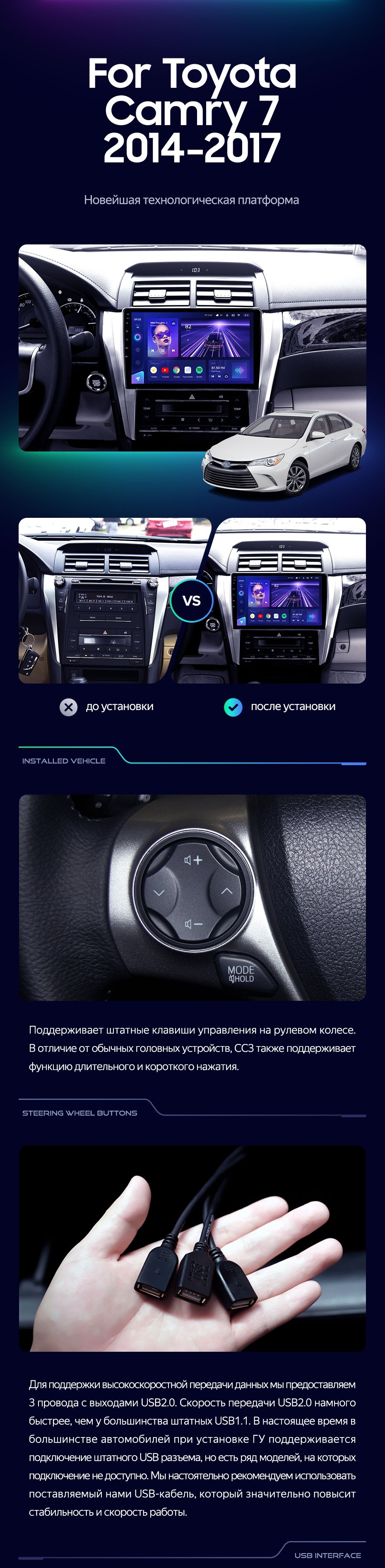 Штатная магнитола Teyes CC4 6/64 Toyota Camry 7 XV 50 55 (2014-2017) F4 - купить всего за 47 800 руб. в интернет-магазине во Владивостоке Teyes.com.ru. ✓ Самый лучший выбор мультимедиа ✓ Лучшая замена штатному ГУ ✓ Тел. +7 (800) 775-31-74