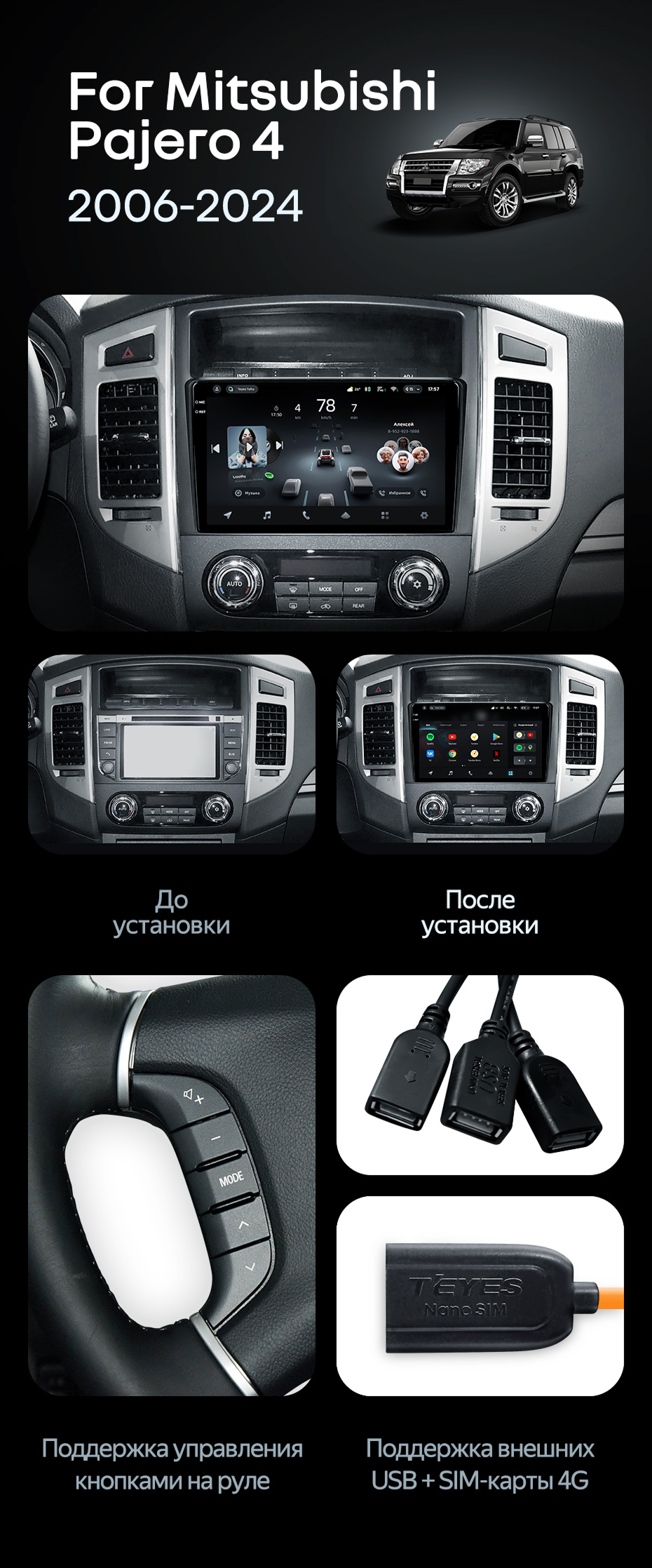 Штатная магнитола Teyes CC4 8/128 Mitsubishi Pajero 4 V80 V90 (2006-2024) - купить всего за 52 900 руб. в интернет-магазине во Владивостоке Teyes.com.ru. ✓ Самый лучший выбор мультимедиа ✓ Лучшая замена штатному ГУ ✓ Тел. +7 (800) 775-31-74