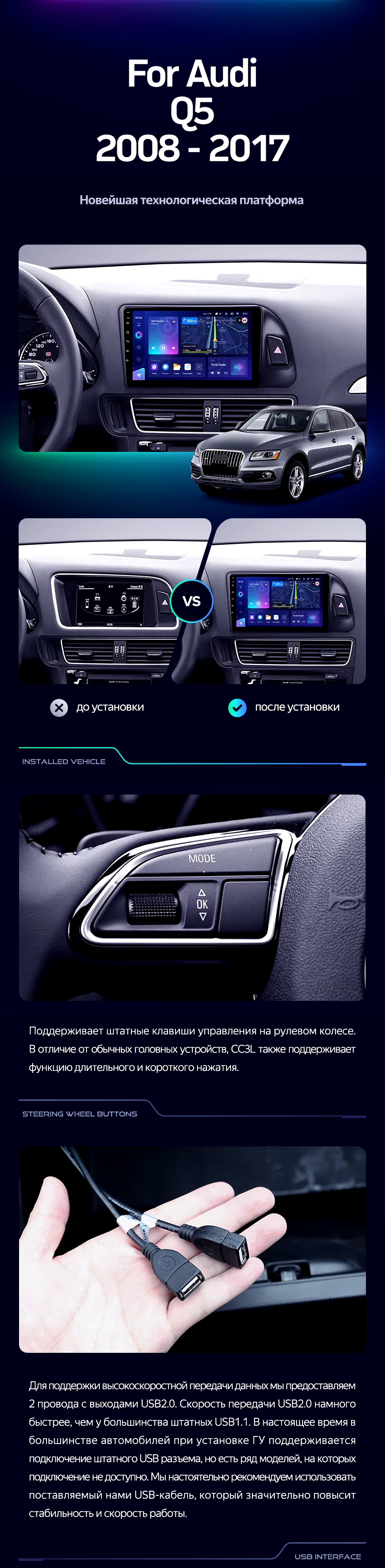 Штатная магнитола Teyes CC4 Pro 8/128 Audi Q5 8R (2008-2017) Тип-A (11") - купить всего за 63 840 руб. в интернет-магазине во Владивостоке Teyes.com.ru. ✓ Самый лучший выбор мультимедиа ✓ Лучшая замена штатному ГУ ✓ Тел. +7 (800) 775-31-74