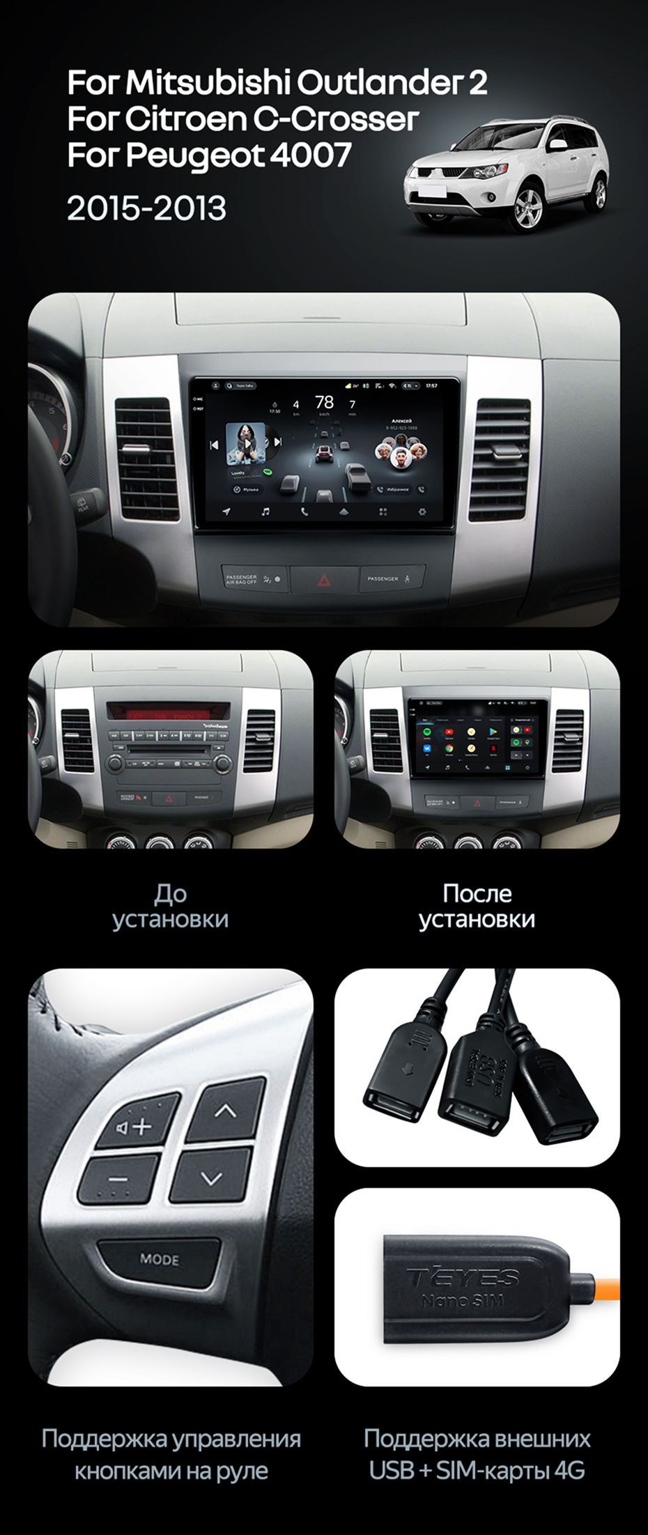Штатная магнитола Teyes CC4 Pro 8/128 Citroen C-Crosser 1 (2007-2013) Тип-B - купить всего за 59 440 руб. в интернет-магазине во Владивостоке Teyes.com.ru. ✓ Самый лучший выбор мультимедиа ✓ Лучшая замена штатному ГУ ✓ Тел. +7 (800) 775-31-74