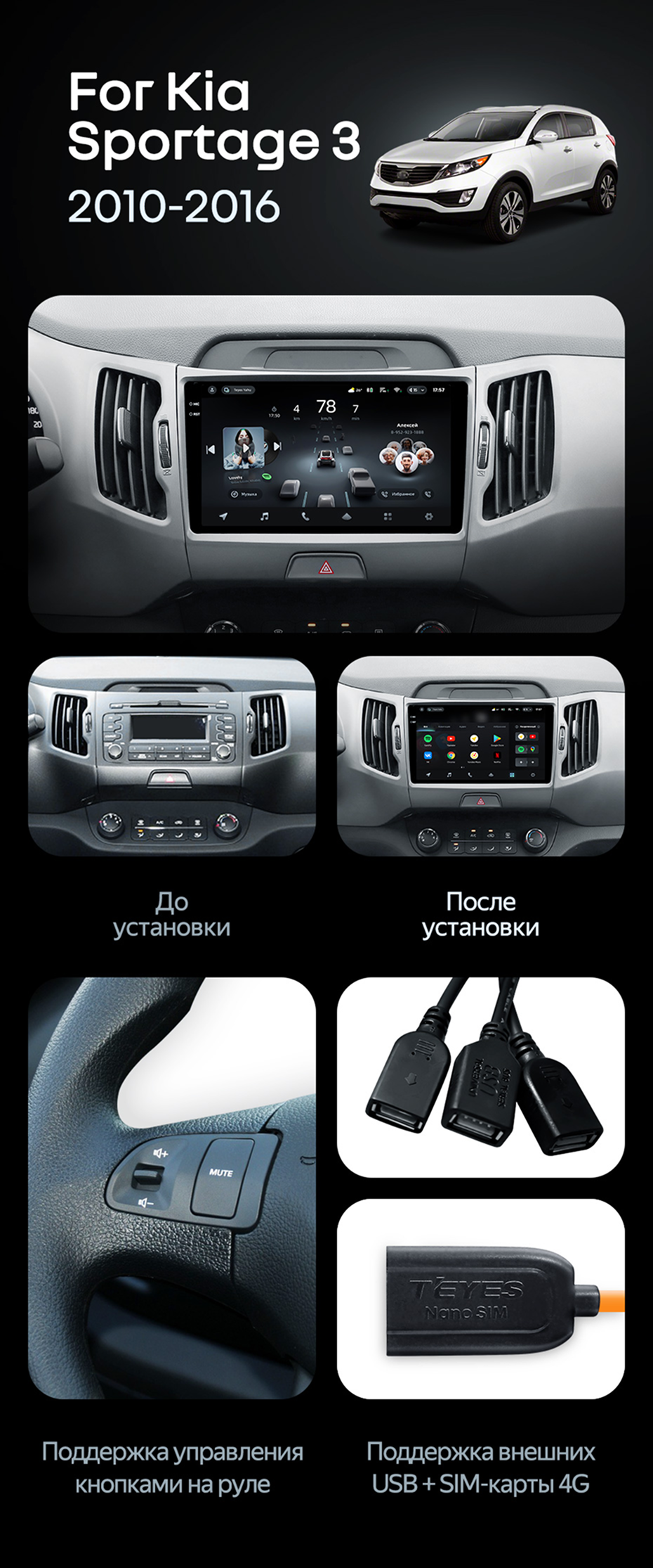 Штатная магнитола Teyes CC4 Pro 8/128 Kia Sportage 3 SL (2010-2016) Тип-A - купить всего за 57 790 руб. в интернет-магазине во Владивостоке Teyes.com.ru. ✓ Самый лучший выбор мультимедиа ✓ Лучшая замена штатному ГУ ✓ Тел. +7 (800) 775-31-74