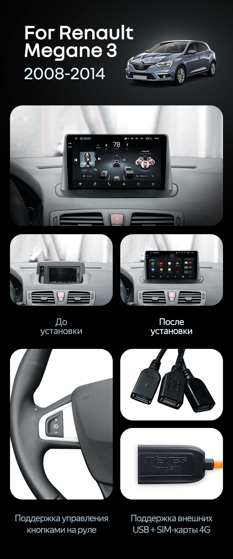 Штатная магнитола Teyes CC4 Pro 8/128 Renault Megane 3 (2008-2014) - купить всего за 59 800 руб. в интернет-магазине во Владивостоке Teyes.com.ru. ✓ Самый лучший выбор мультимедиа ✓ Лучшая замена штатному ГУ ✓ Тел. +7 (800) 775-31-74