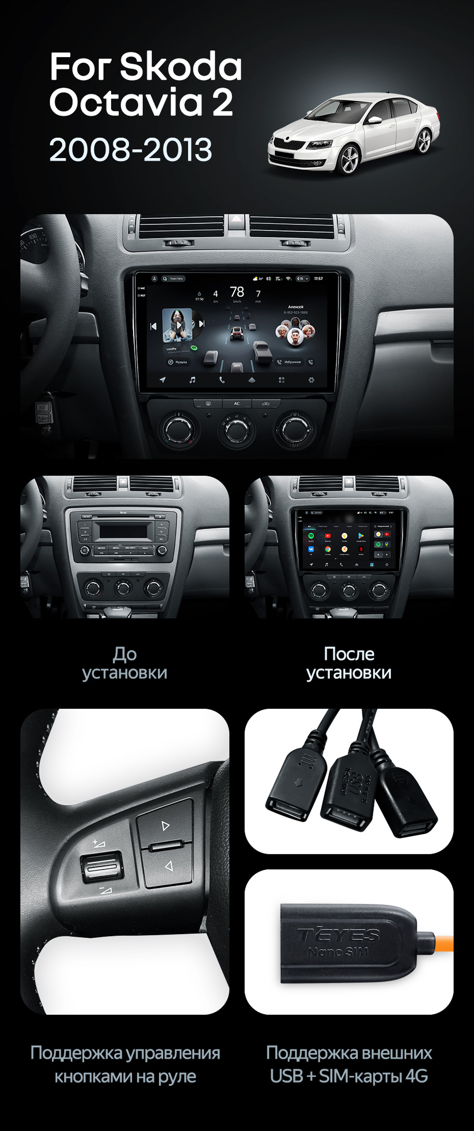 Штатная магнитола Teyes CC4 Pro 8/128 Skoda Octavia 2 A5 (2008-2013) - купить всего за 56 600 руб. в интернет-магазине во Владивостоке Teyes.com.ru. ✓ Самый лучший выбор мультимедиа ✓ Лучшая замена штатному ГУ ✓ Тел. +7 (800) 775-31-74