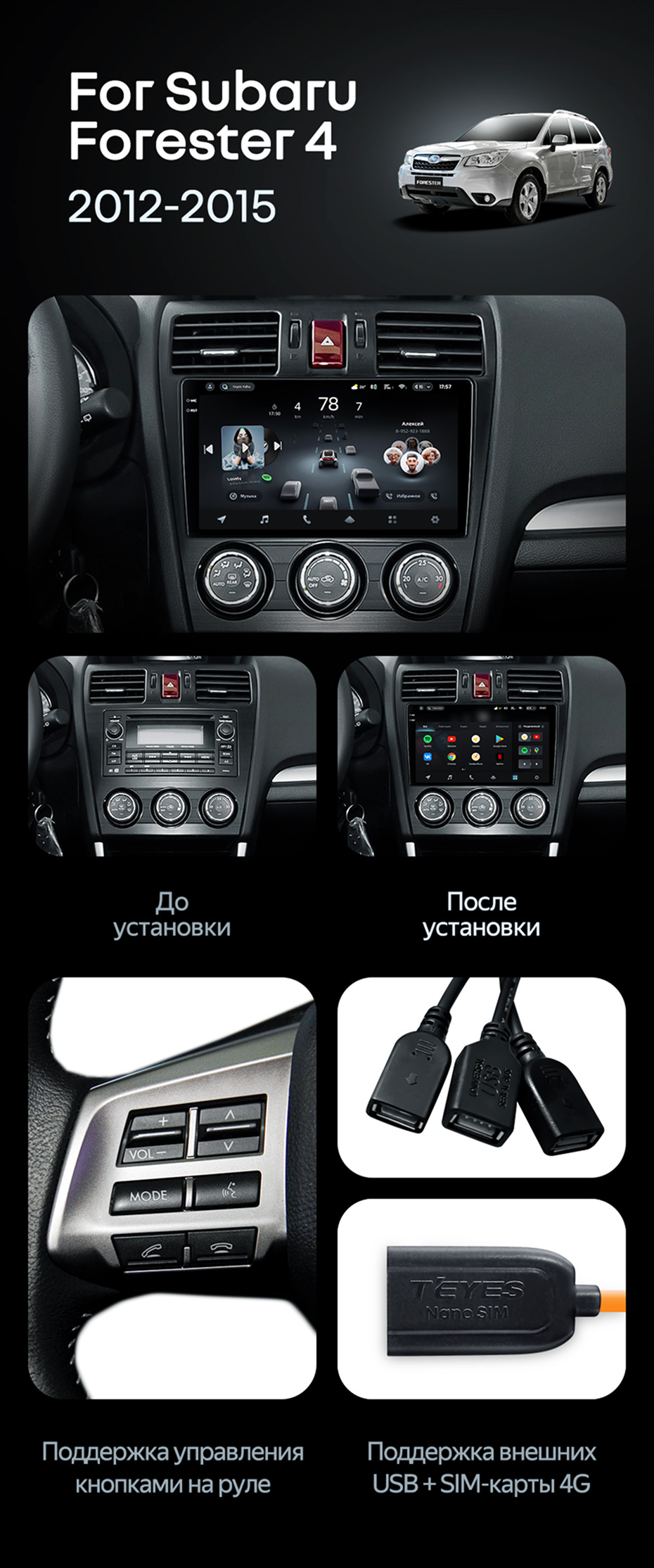 Штатная магнитола Teyes CC4 Pro 8/128 Subaru Forester 4 SJ (2012-2015) Тип-A - купить всего за 57 900 руб. в интернет-магазине во Владивостоке Teyes.com.ru. ✓ Самый лучший выбор мультимедиа ✓ Лучшая замена штатному ГУ ✓ Тел. +7 (800) 775-31-74