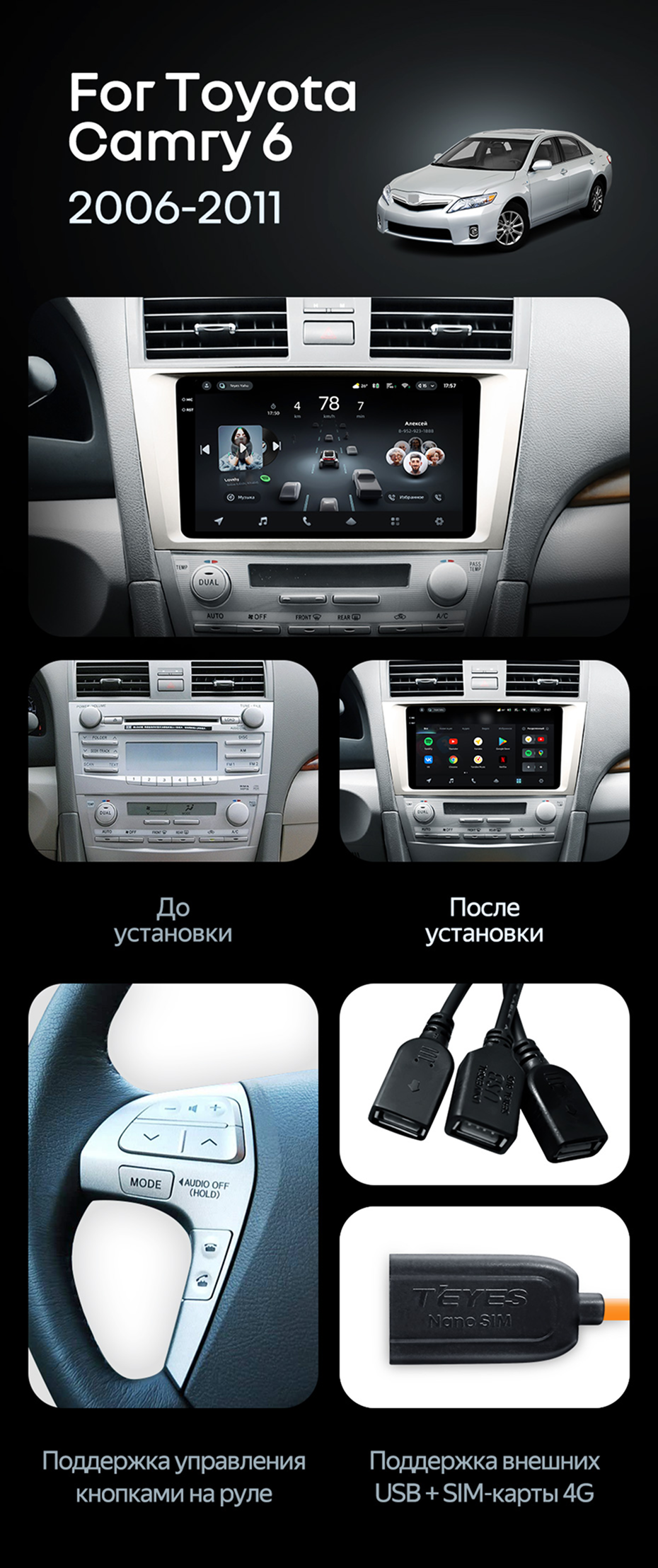 Штатная магнитола Teyes CC4L 6/64 Toyota Camry 6 XV 40 (2006-2011) F1 - купить всего за 30 020 руб. в интернет-магазине во Владивостоке Teyes.com.ru. ✓ Самый лучший выбор мультимедиа ✓ Лучшая замена штатному ГУ ✓ Тел. +7 (800) 775-31-74