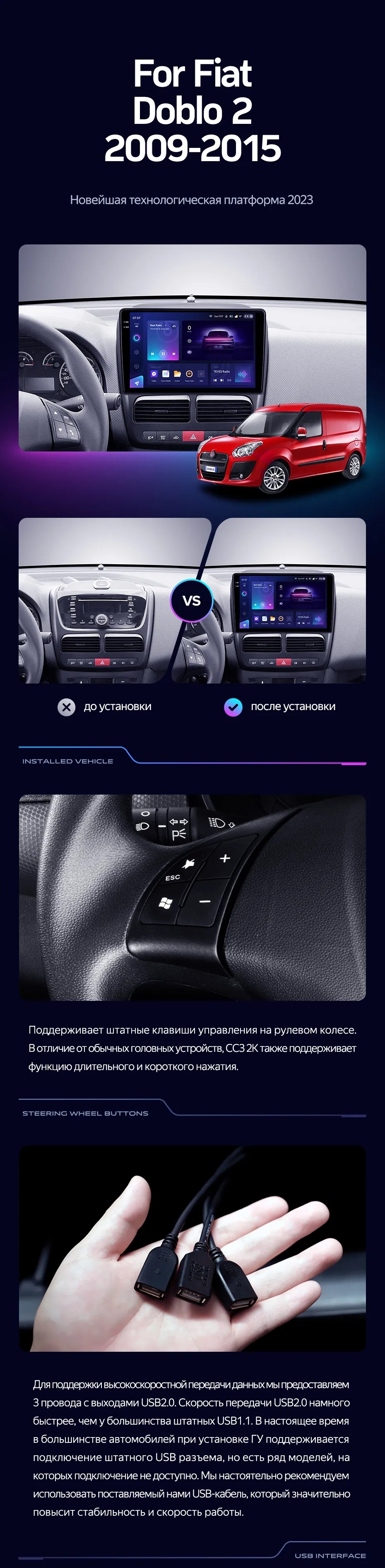 Полный комплект установки магнитолы Teyes с рамкой и проводкой можно выбрать в каталоге штатных магнитол Fiat Doblo 2 263 (2009-2015).