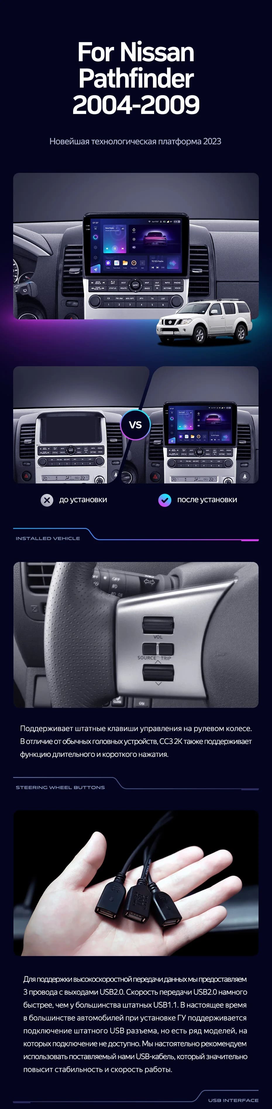 Полный комплект установки магнитолы Teyes с рамкой и проводкой можно выбрать в каталоге штатных магнитол Nissan Pathfinder R51 (2004-2009).